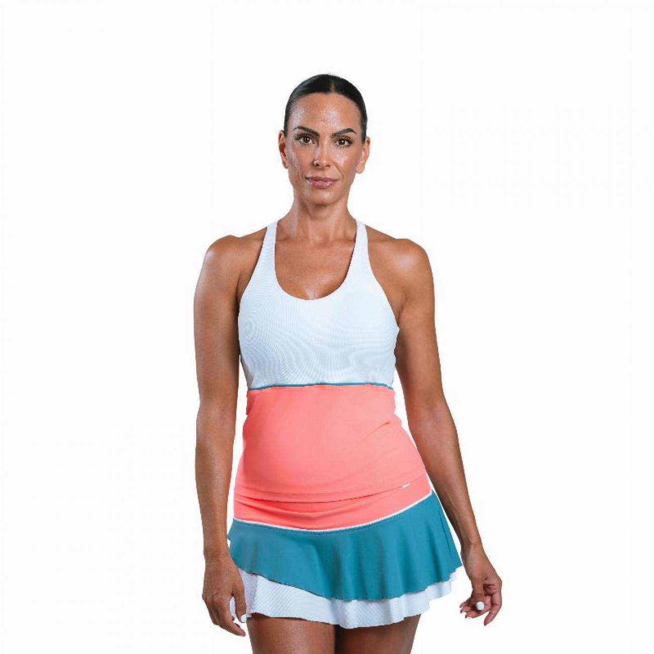 Seu sutiã integrado e tecido técnico o tornam uma opção prática e de alto desempenho para jogadores que querem se sentir confiantes e frescos, destacando-se dentro e fora das quadras.